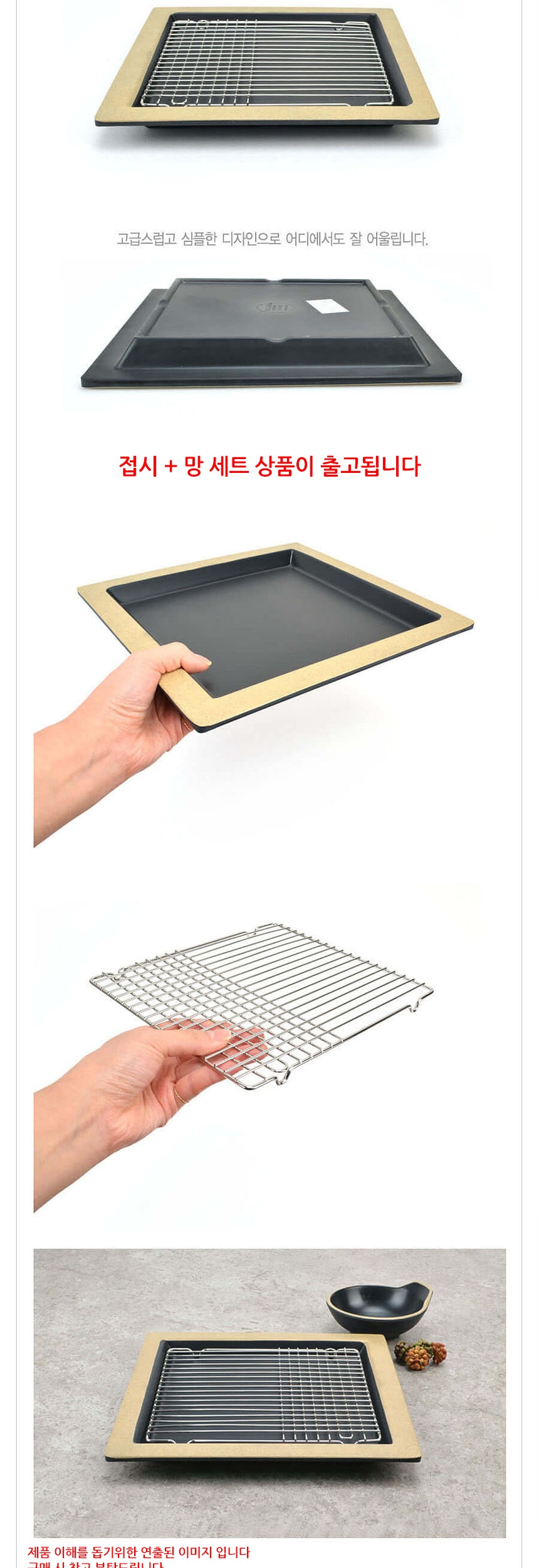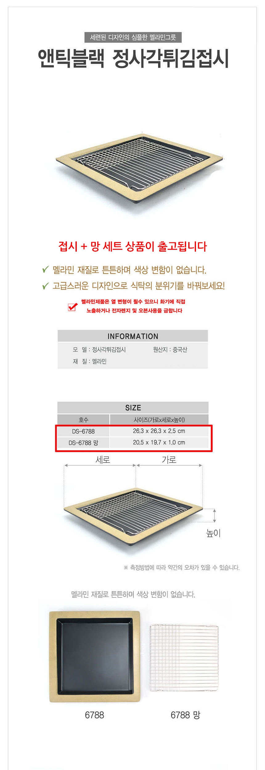 멜라민 돈까스 튀김용 정사각접시 앤틱블랙 망포함 이미지/