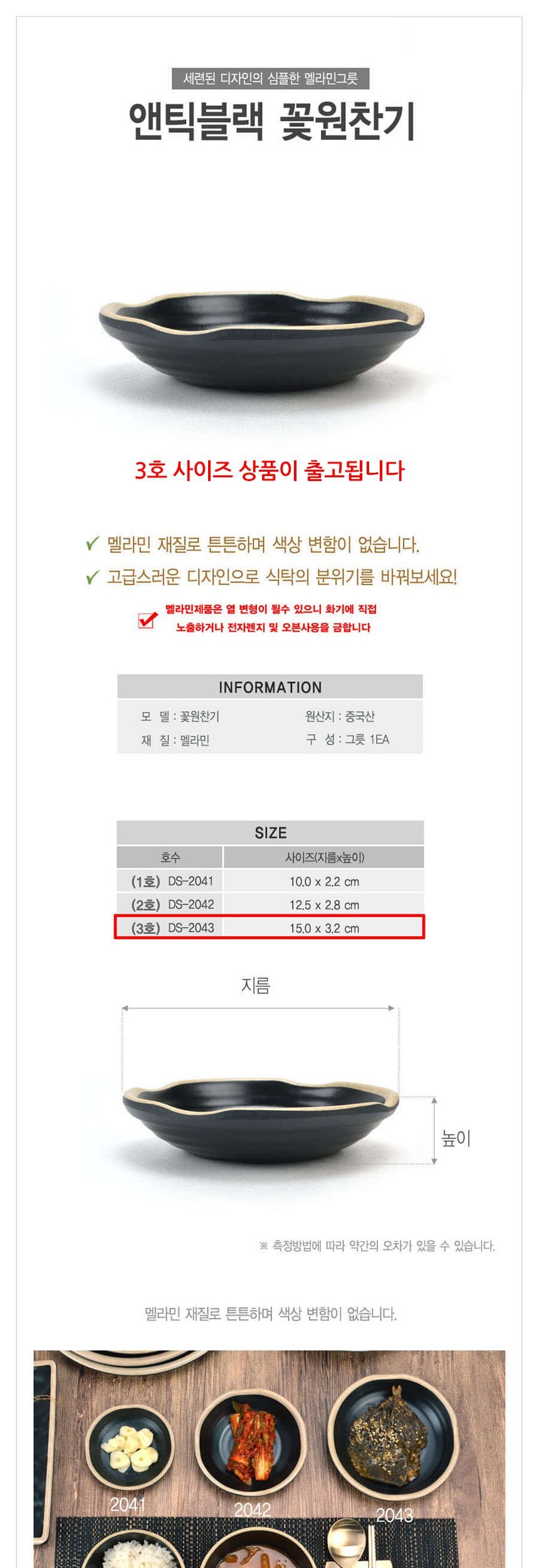 업소용 멜라민 꽃모양 원형찬기 앤틱블랙 3호 15cm 이미지/