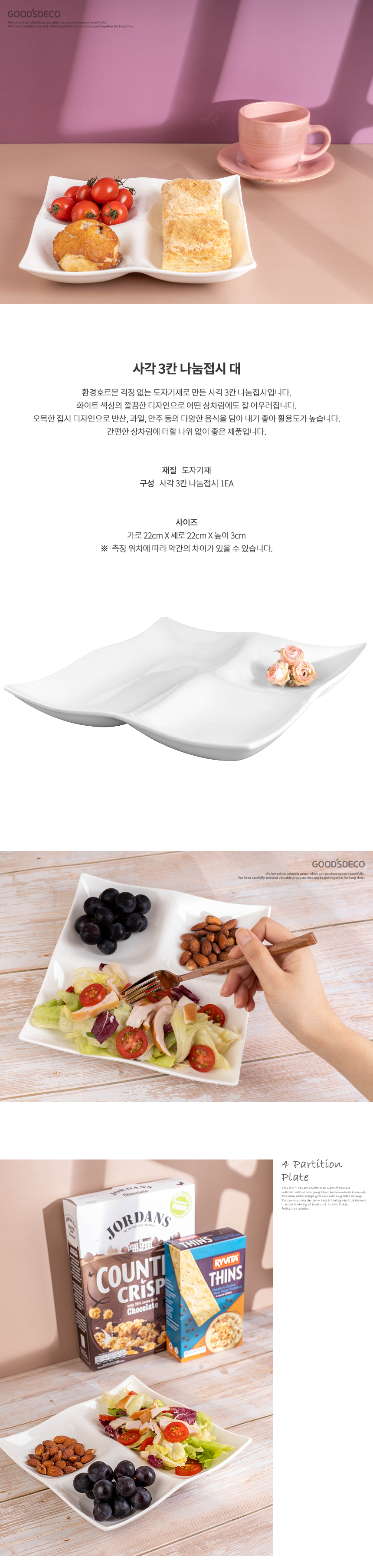 • 품명 및 모델명화이트 정사각 3칸 나눔접시 (대)
