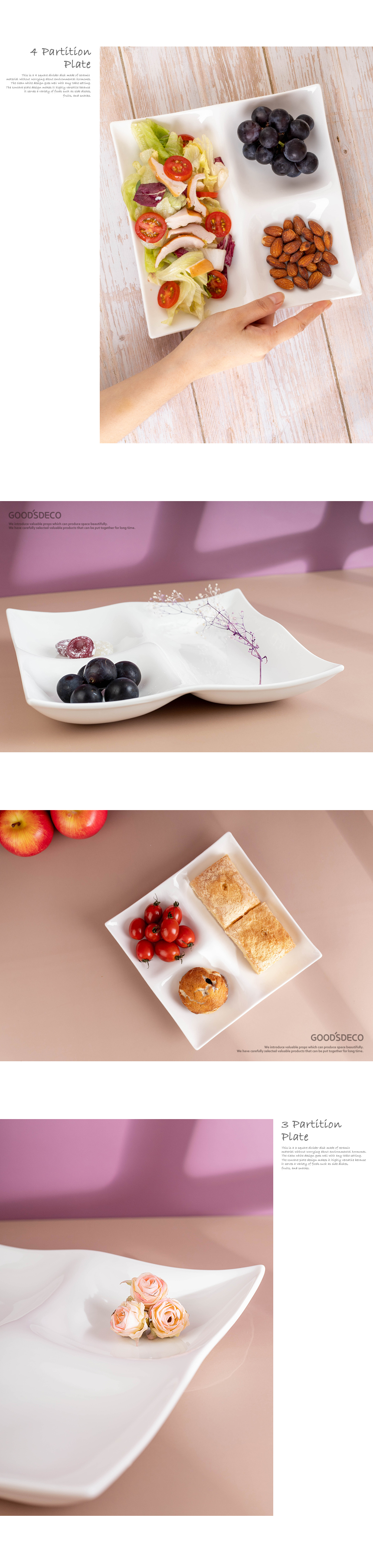 화이트 정사각 3칸 나눔접시 대/주방용품/주방소품/반찬그릇/소스그릇/접시 이미지/