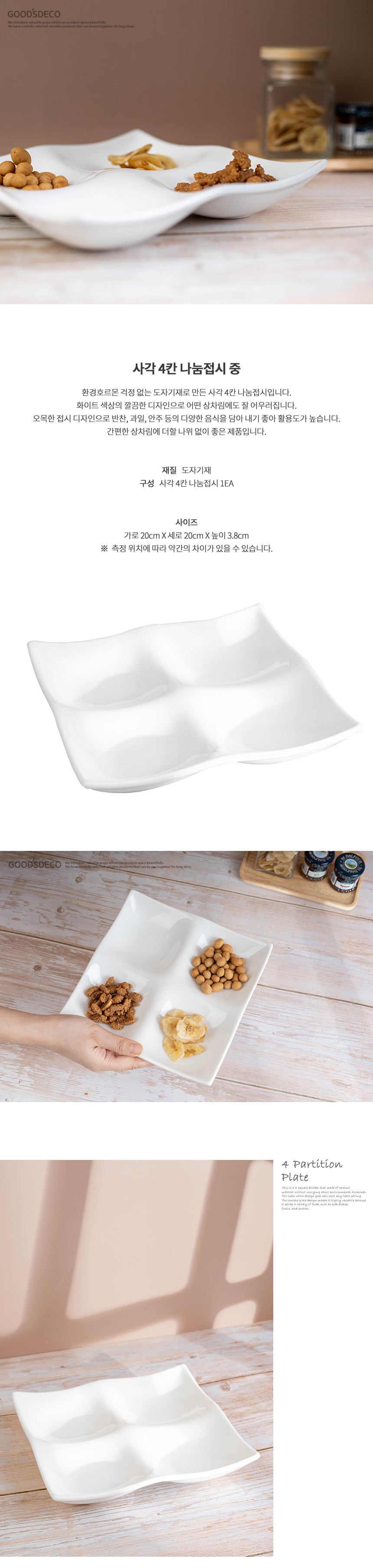 • 품명 및 모델명화이트 정사각 4칸 나눔접시 (중)