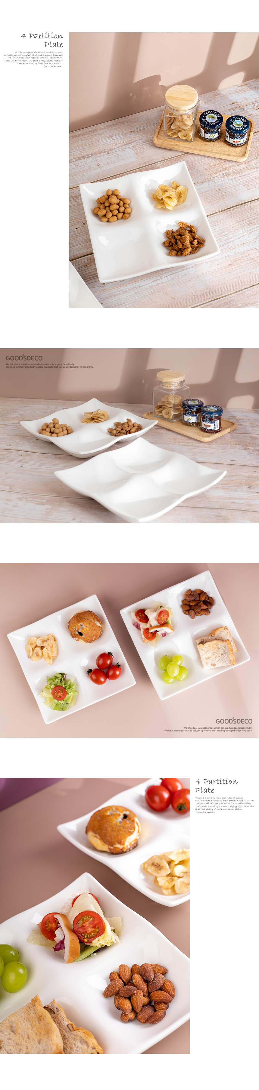 화이트 정사각 4칸 나눔접시 중/주방용품/주방소품/반찬그릇/접시/반찬접시 이미지/