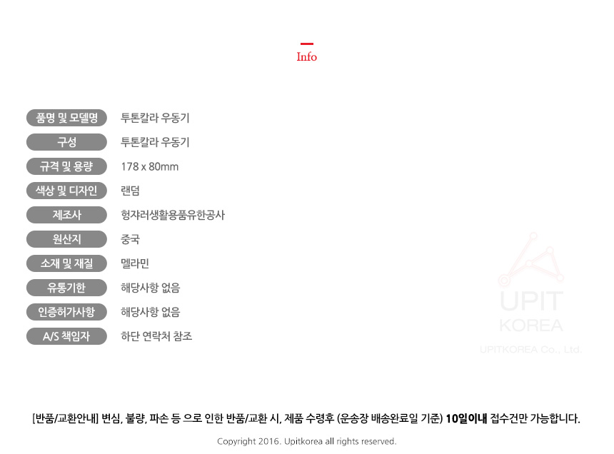 • 초기제품 이상의 경우 동일한 제품으로 1:1 교환원칙, 사용후 제품이상은 A/S를 원칙으로 합니다.