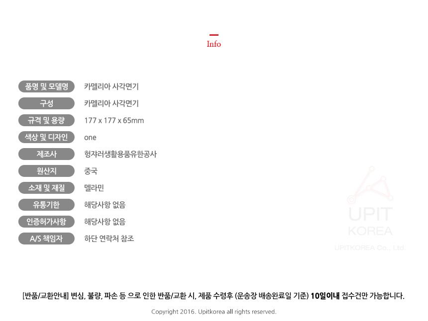 • 초기제품 이상의 경우 동일한 제품으로 1:1 교환원칙, 사용후 제품이상은 A/S를 원칙으로 합니다.
