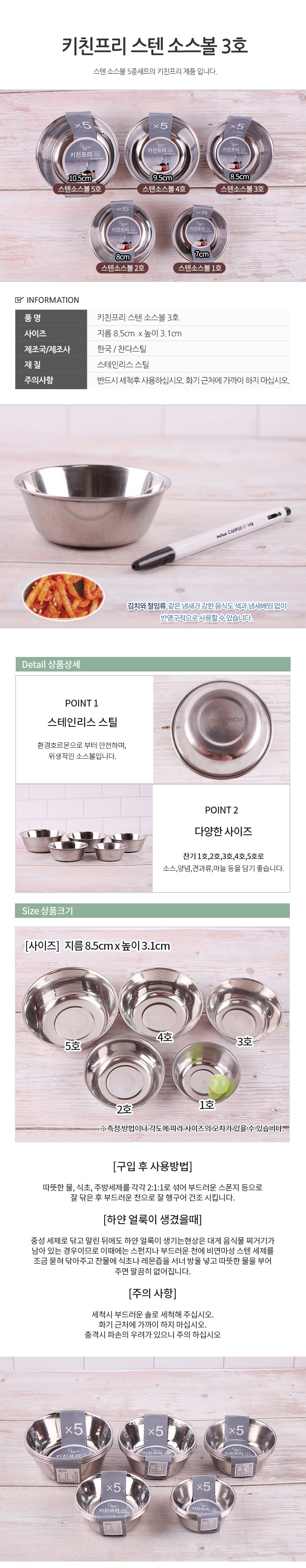 키친프리 스텐 소스볼 3호 5P 이미지/