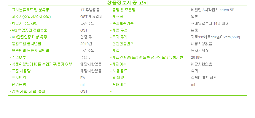 에일린 A사각접시 11cm 5개 접시 그릇 용기