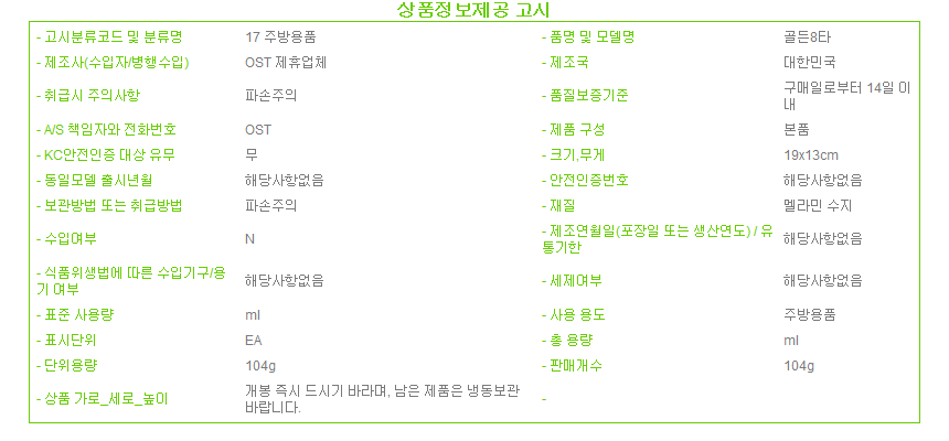 8. 소비자피해보상의 처리, 재화 등에 대한 불만 처리 및 소비자와 사업자 사이의 분쟁처리에 관한 사항 : 상세정보 별도표기