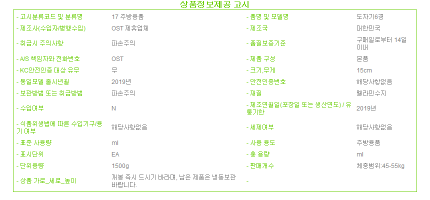제조자 상품상세설명에 표기
