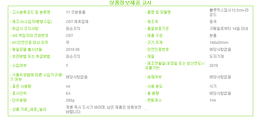 제조자 상품상세설명에 표기