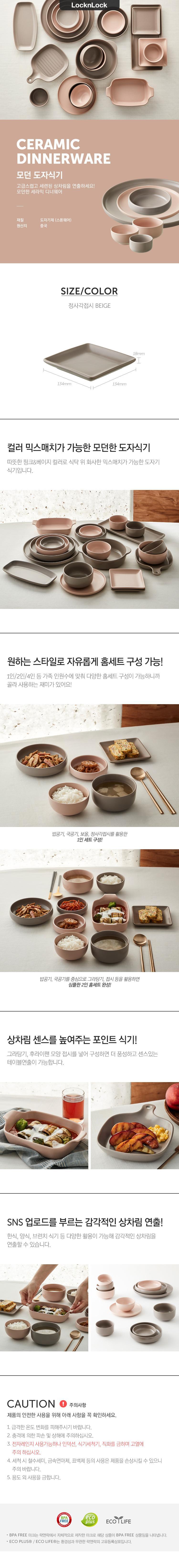 접시 모던 베이지 정사각 도자식기 찬기 반찬그릇