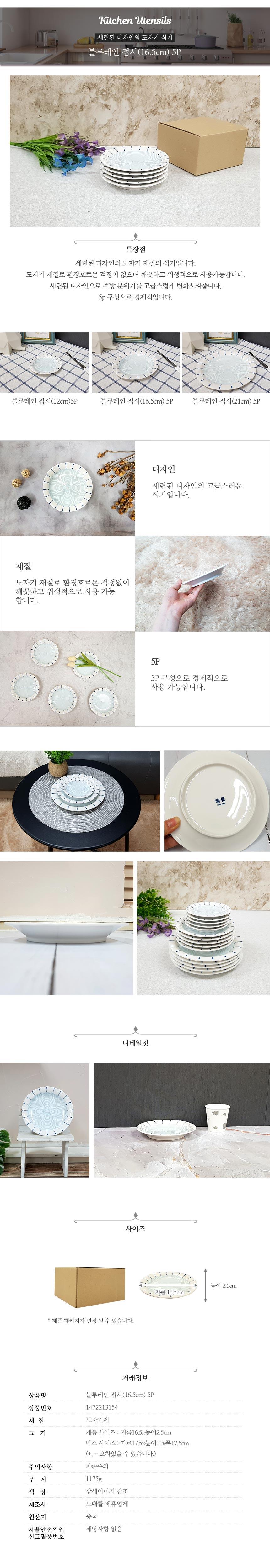 접시 블루레인 16.5cm 5P 그릇 주방용품 예쁜그릇 이미지/