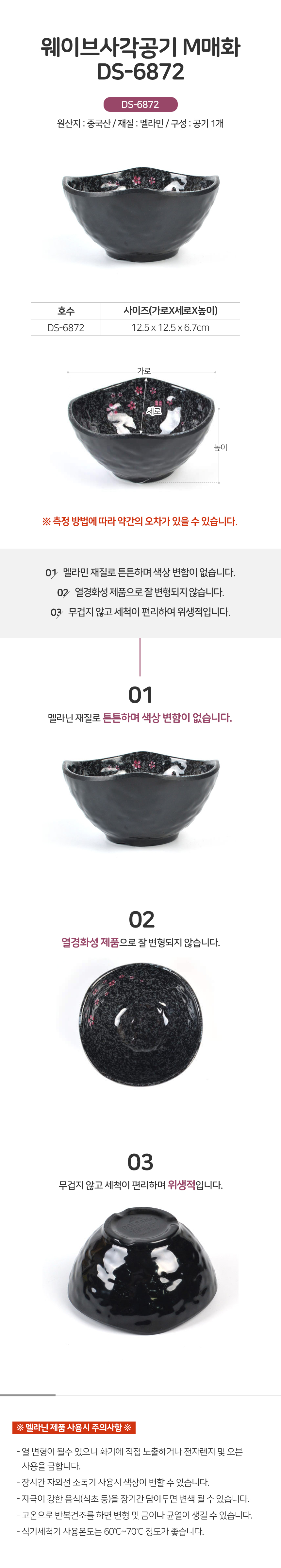 웨이브 사각 공기 DS-6872 멜라민 그릇 대접 면기