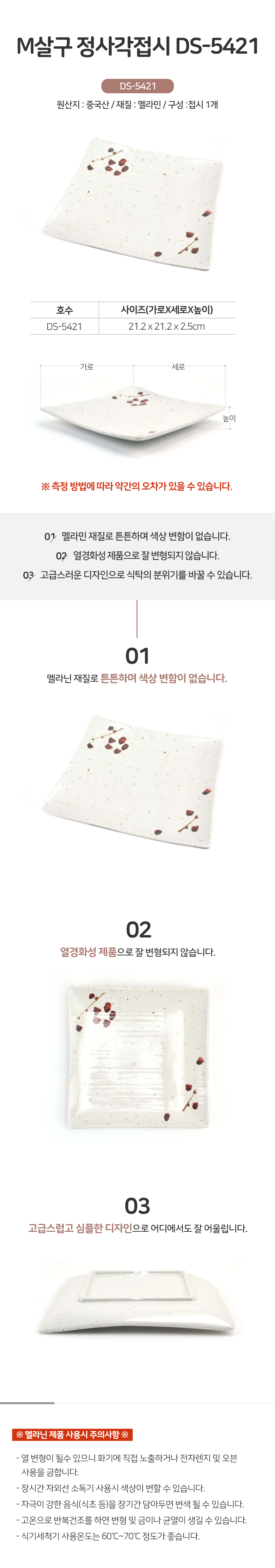 정사각 접시 DS-5421 멜라민 그릇 찬기 업소용 식당