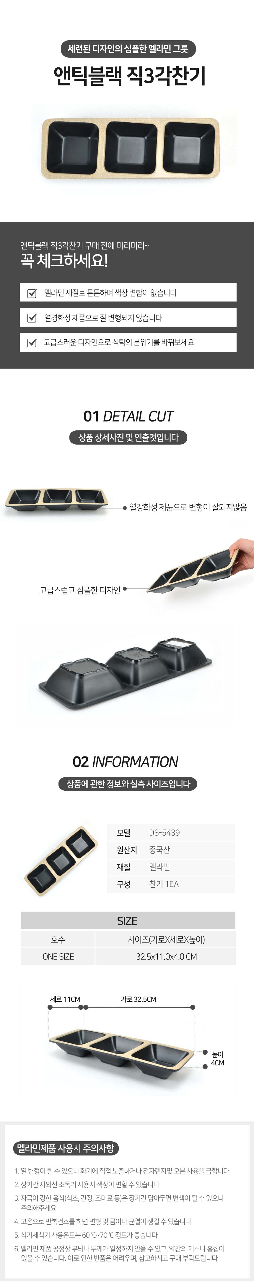 앤틱블랙 직3각 찬기 멜라민 그릇 접시 업소용 식당 이미지/
