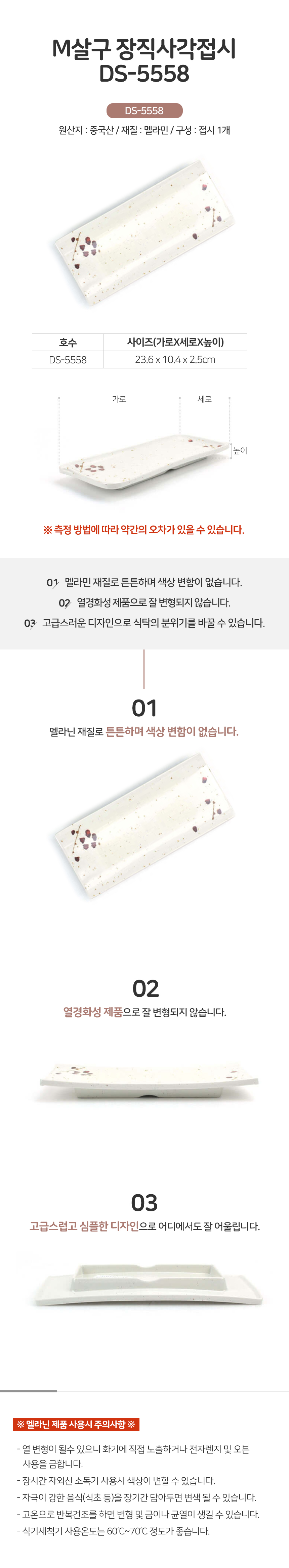 장직사각 접시 DS-5558 멜라민 그릇 찬기 업소용