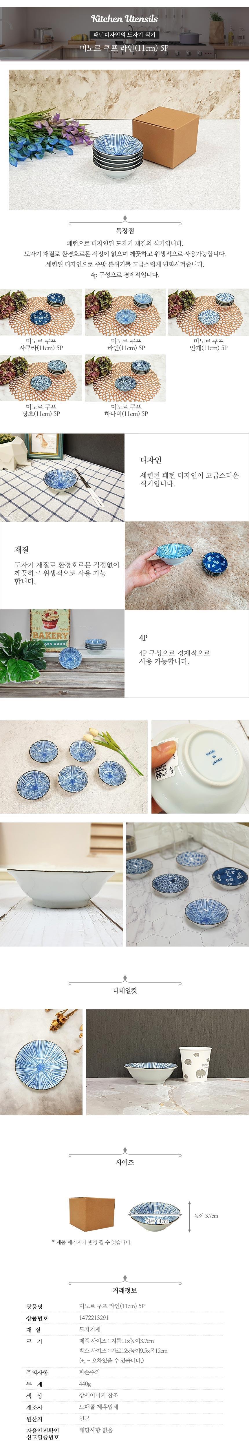 11cm 라인 미노르쿠프 5P 주방용품 접시 반찬접시
