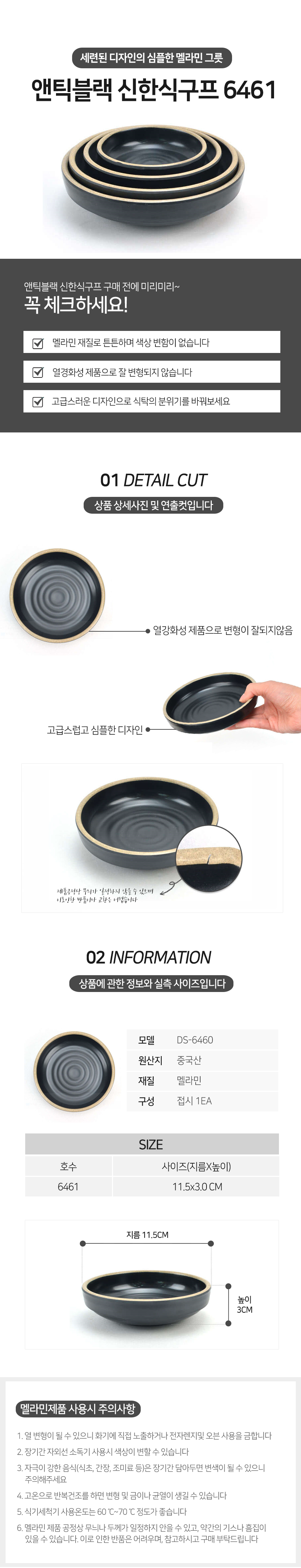 앤틱블랙 신한식 구프 DS-6461 멜라민 그릇 접시 이미지/