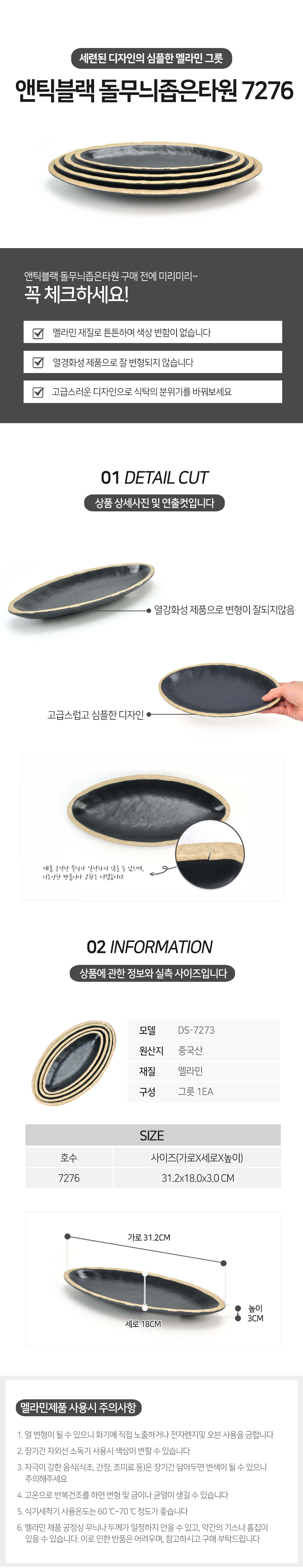 액틱블랙 돌무늬 좁은 타원 DS-7276 멜라민 그릇