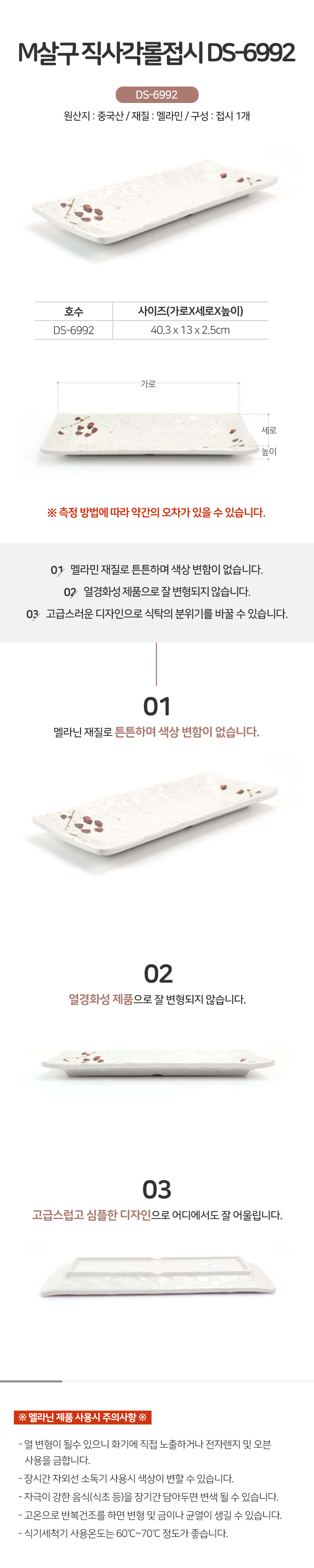 직사각 롤접시 DS-6992 멜라민 그릇 찬기 접시 업소 이미지/