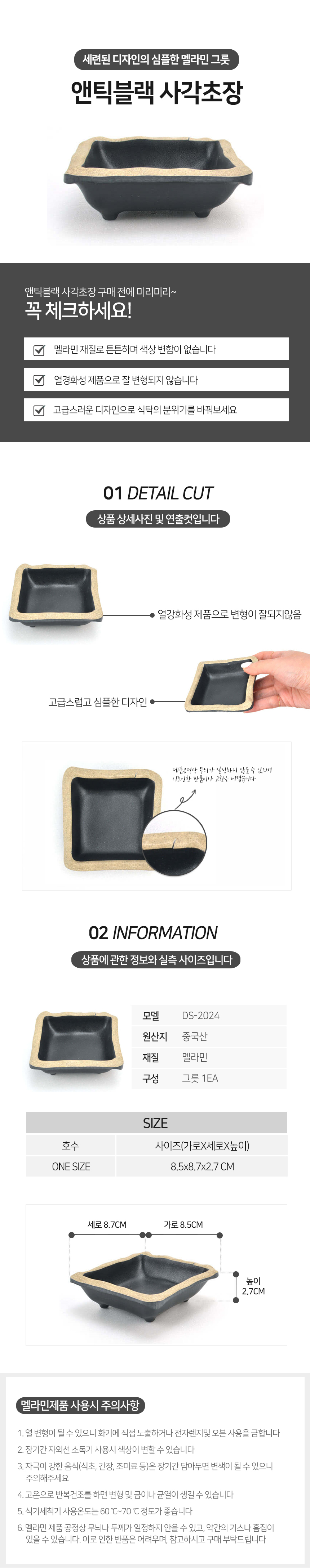 앤틱블랙 사각 초장 멜라민 소스 그릇 앞접시 업소용 이미지/