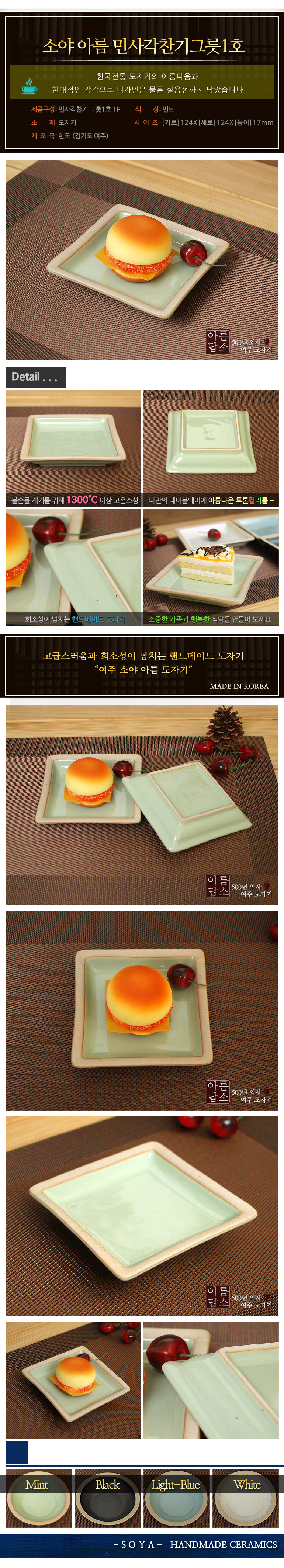 소야 아름 민트 민사각찬기 그릇 1호 이미지/