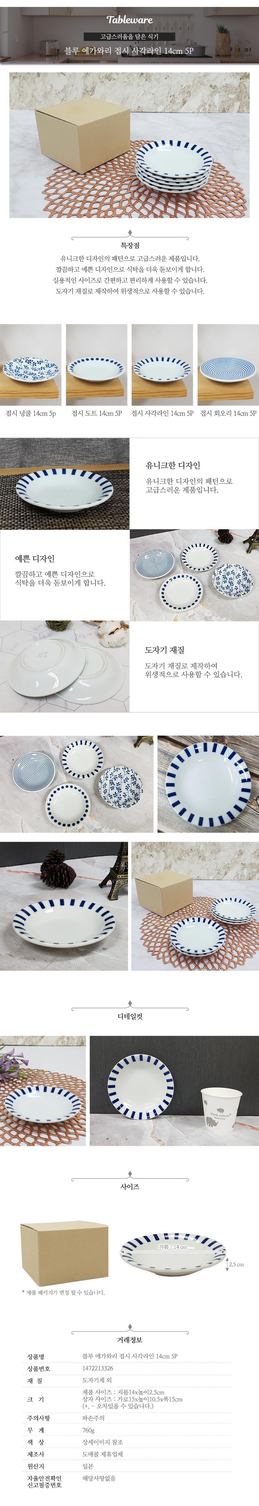 14cm 사각라인 접시 5P 앞접시 반찬접시 그릇 찬기 이미지/