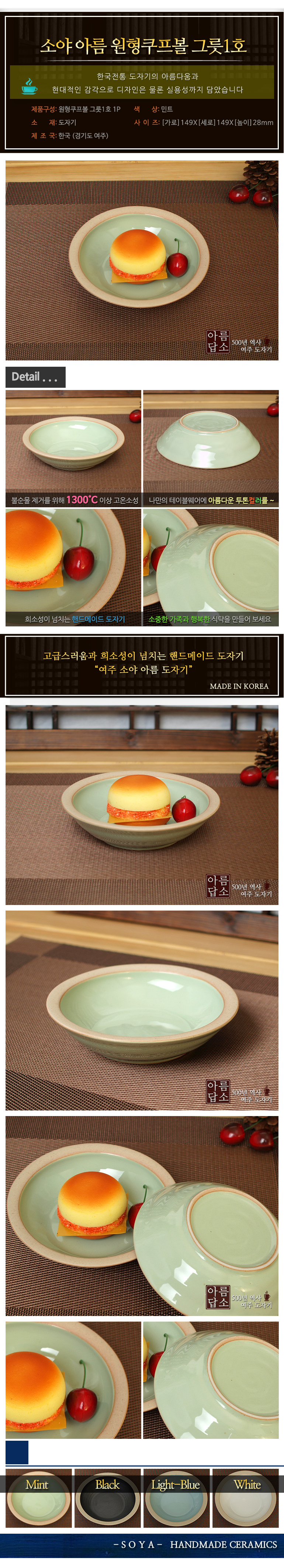 소야 아름 민트 원형쿠프볼 그릇 1호 이미지/