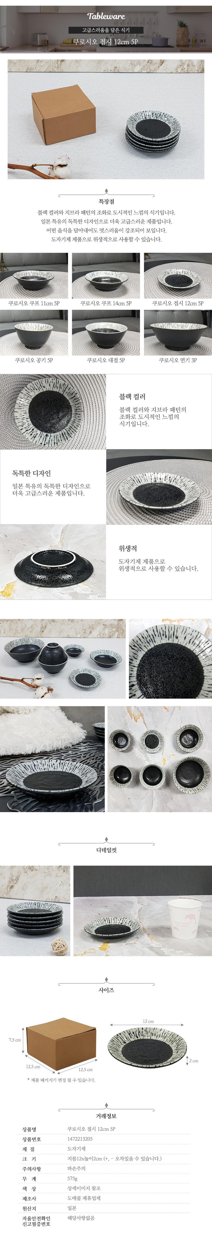 5P 접시 12cm 쿠로시오 앞접시 반찬그릇 찬기 그릇 이미지/