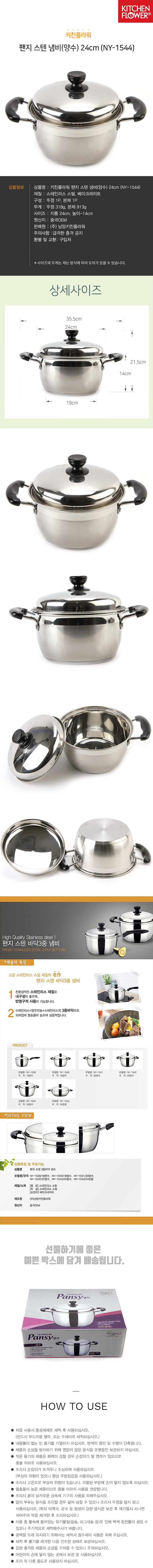 키친플라워 팬지 스텐 냄비(양수) 24cm 요리냄비 이미지/