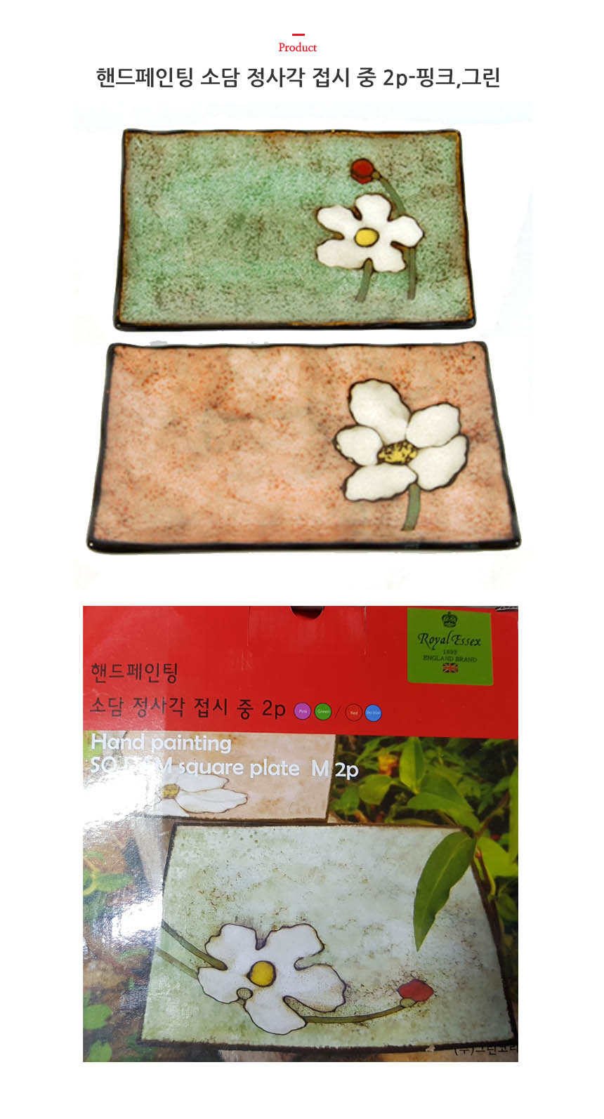 핸드페인팅 소담 정사각 접시 중 2p-핑크그린 이미지/