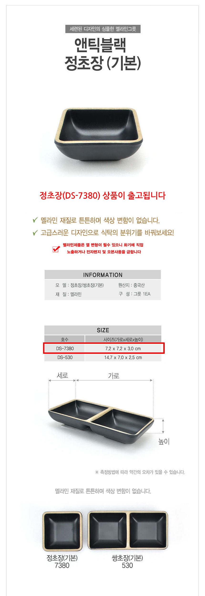 업소용 멜라민 기본형 정초장 소스그릇 앤틱블랙