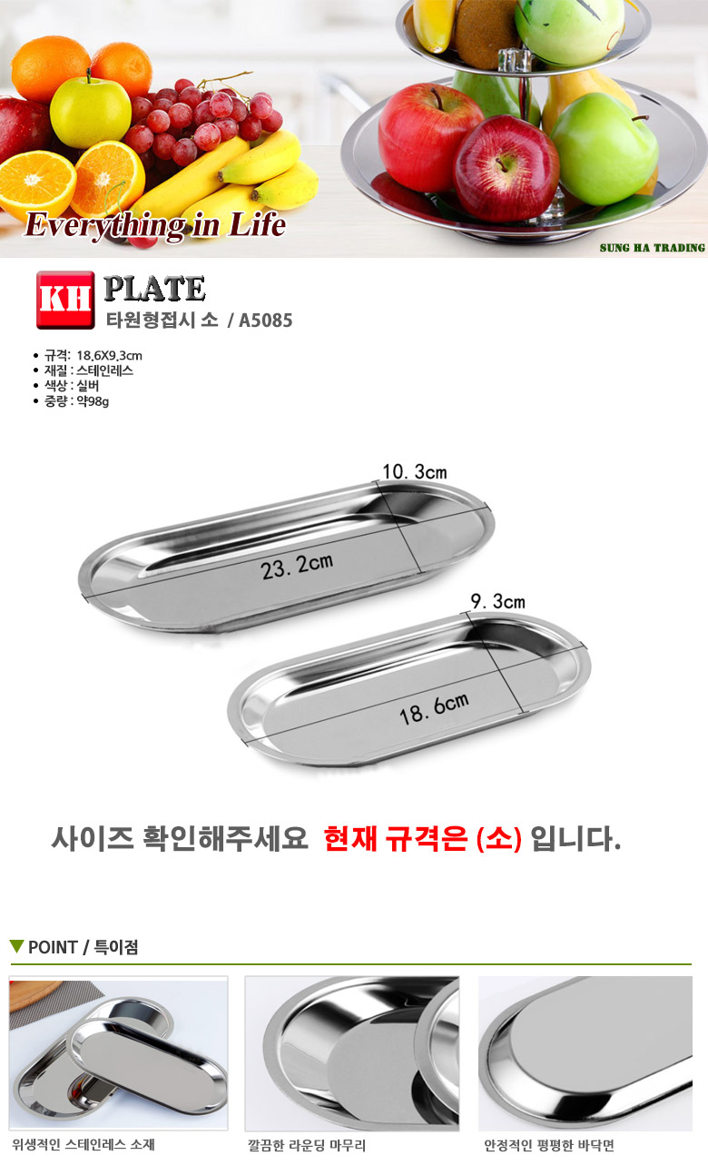 타원형접시 소/접시/플레이트/반찬접시/스텐접시/위생 이미지/