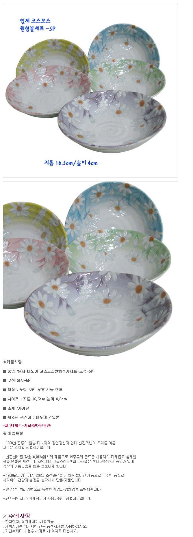 미노야 접시 반찬 그릇 찬기 원형볼 식기 쿠프 5P 이미지/