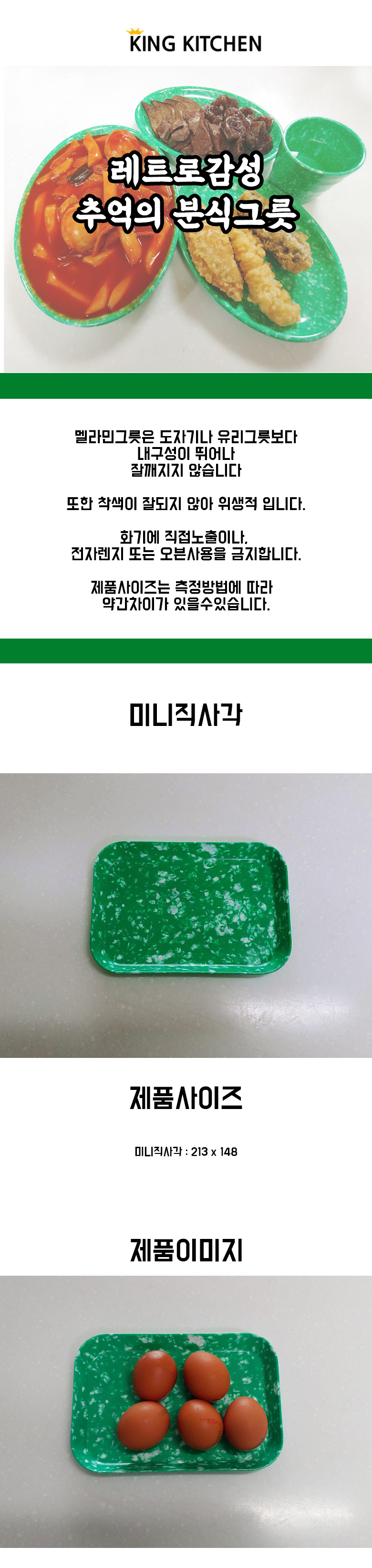 쑥색그릇 레트로접시 분식그릇 추억의그릇 미니직사각 이미지/