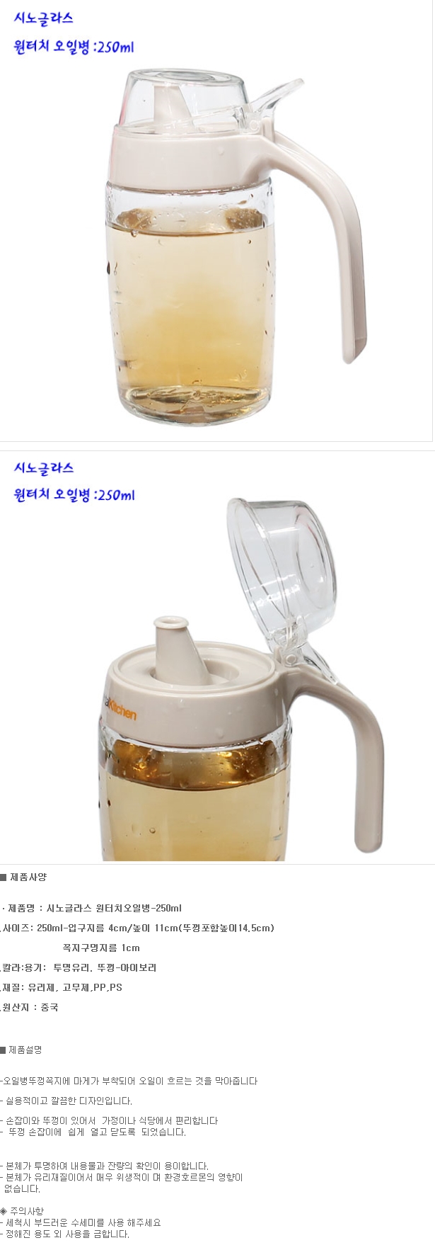 시노글라스 오일병 기름병 소스병 아이보리 250ML 이미지/