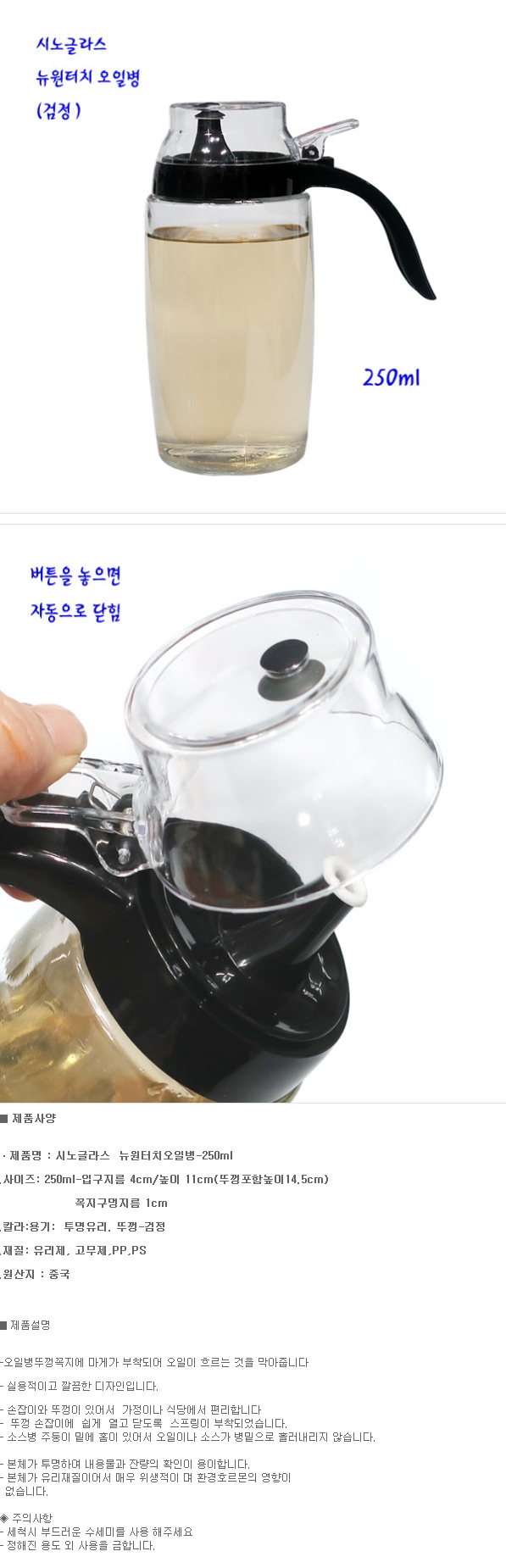 시노글라스 오일병 기름병 소스병 양념병 검정 250ML 이미지/