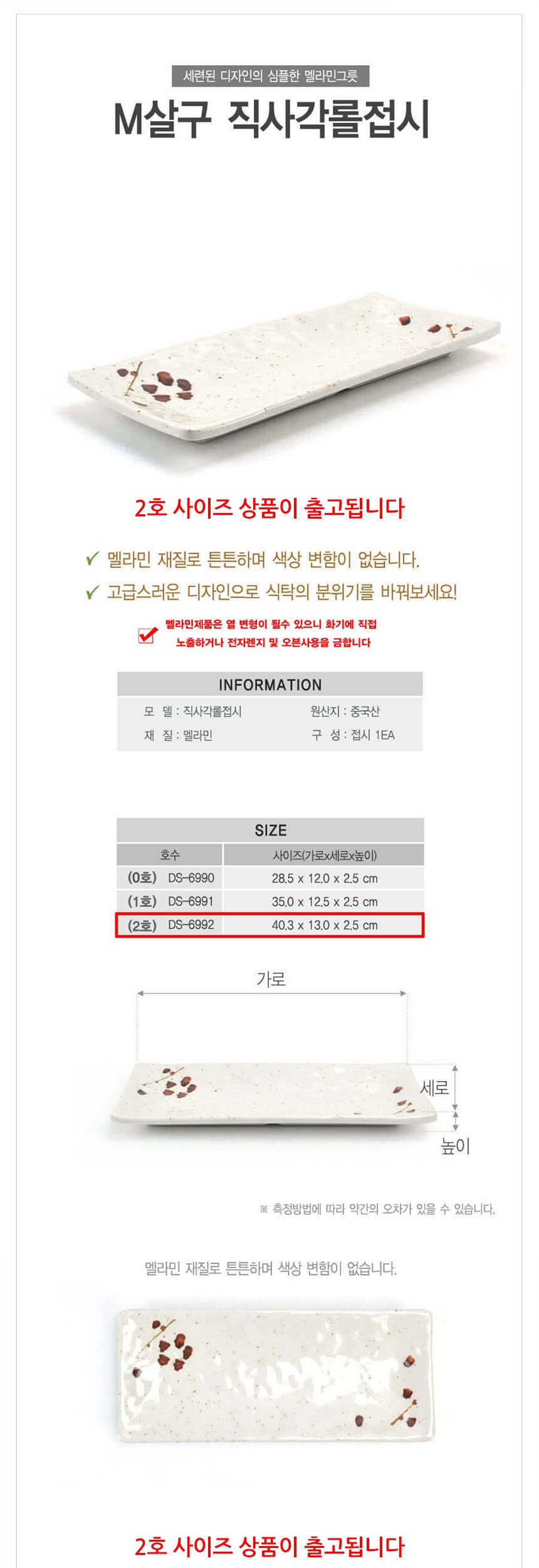 업소용 멜라민 롤 초밥용 직사각접시 살구 2호 이미지/