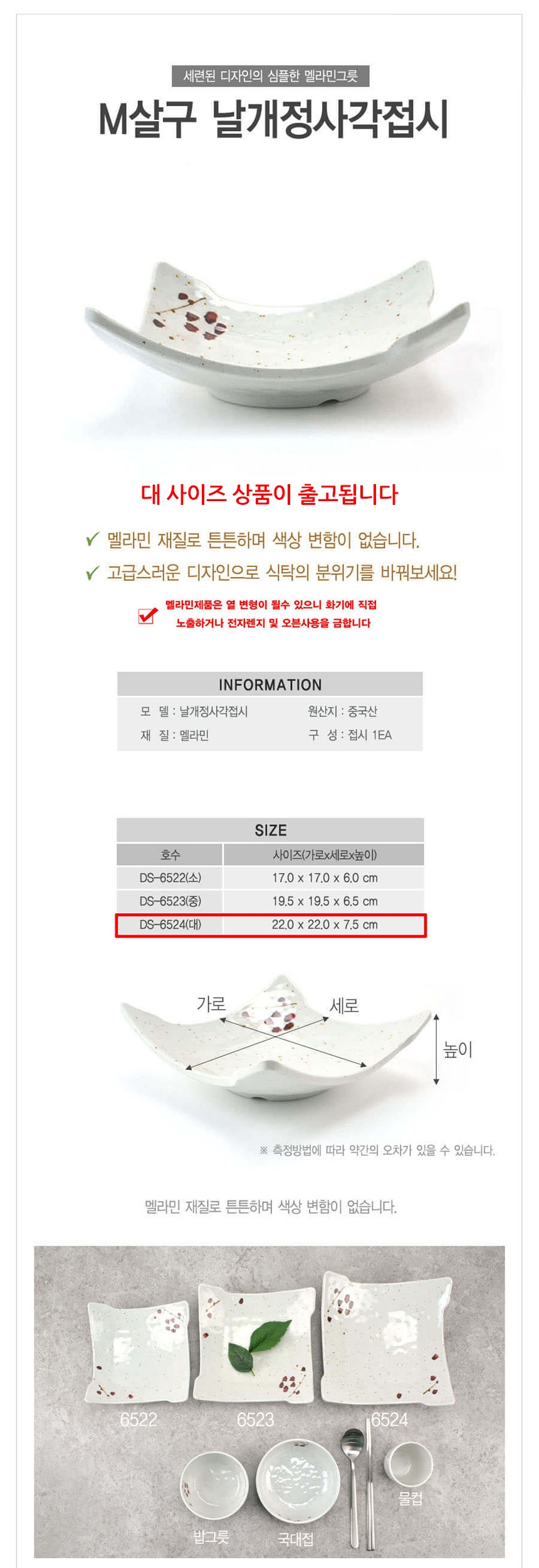 업소용 멜라민 날개 정사각접시 살구 대형 이미지/