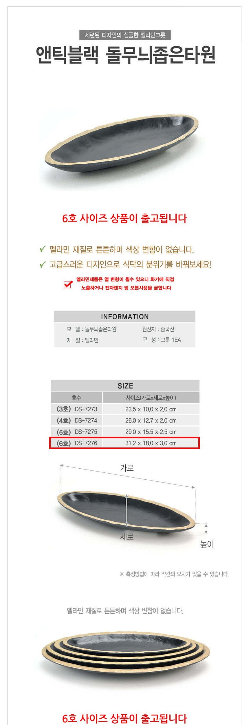 업소용 멜라민 돌무늬 좁은 타원접시 앤틱블랙 6호 이미지/