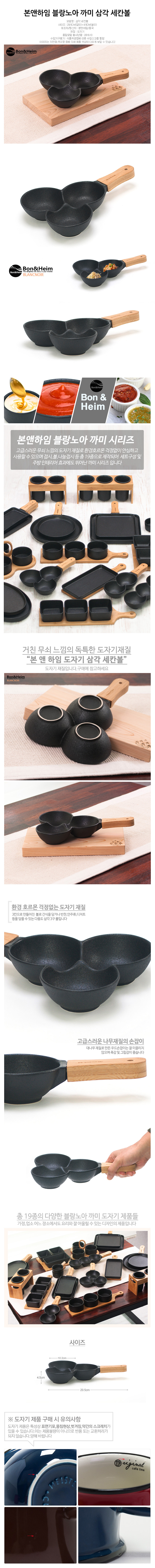 도자기 블랑노아 까미 삼각 세칸볼 나눔접시 (블랙)
