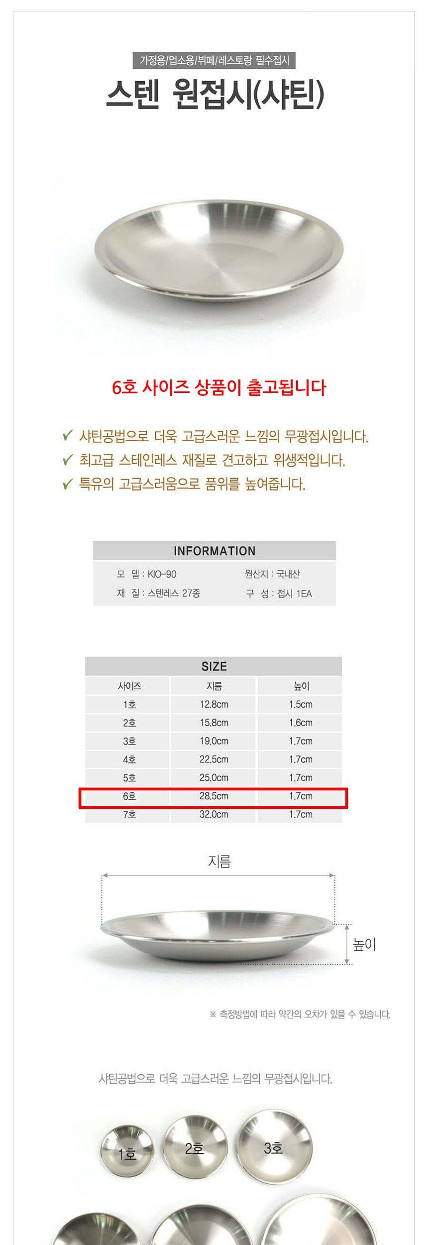 업소용 스테인레스 후지 원형접시 무광 6호 28cm 이미지/