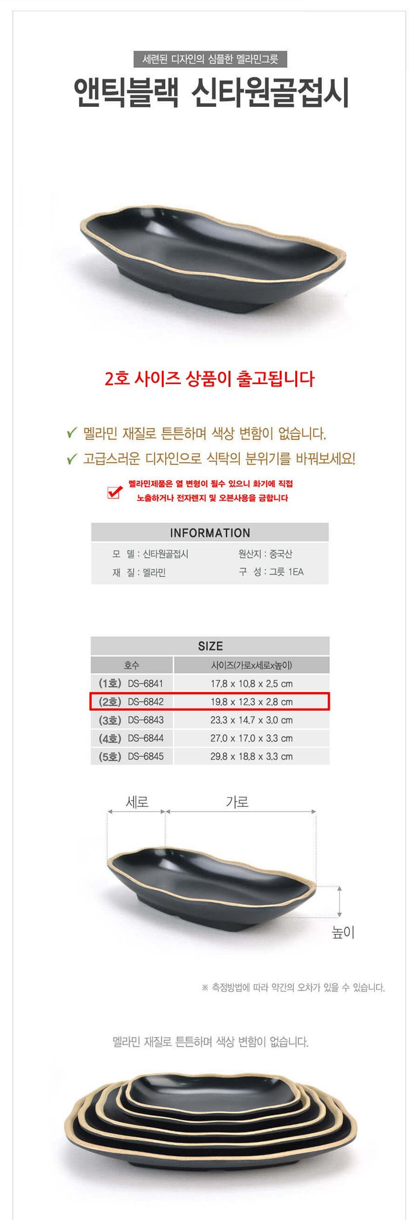 업소용 멜라민 신형 타원형 골접시 앤틱블랙 2호