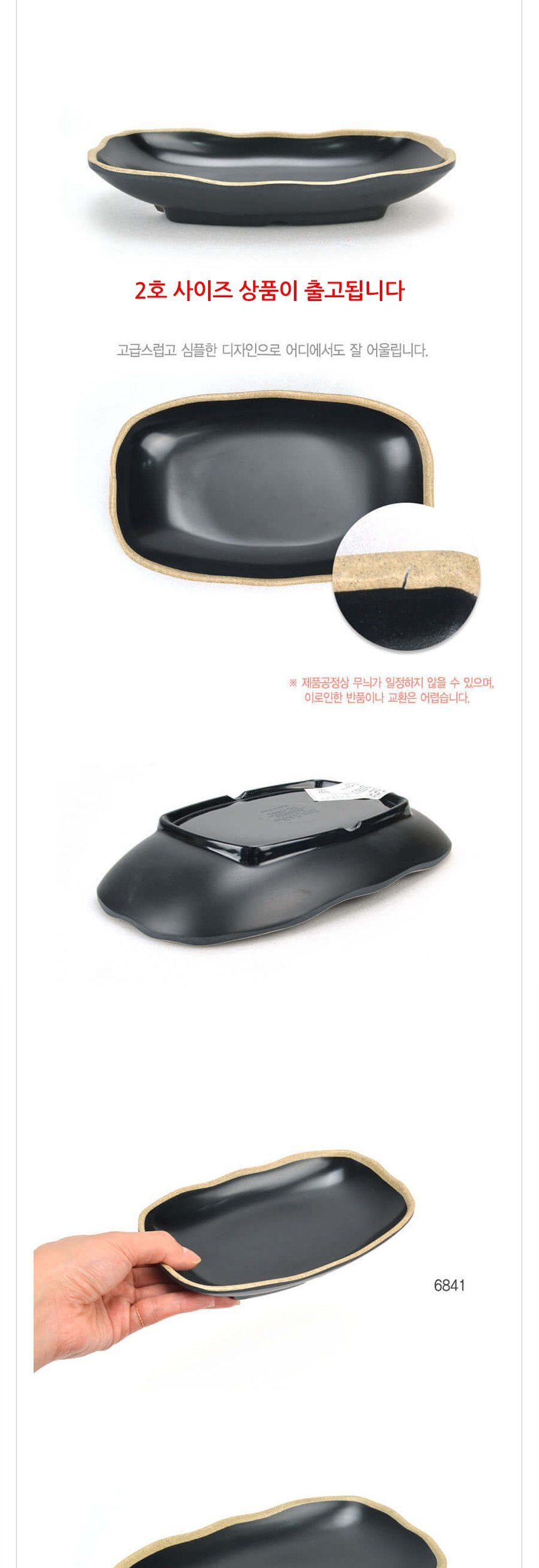 업소용 멜라민 신형 타원형 골접시 앤틱블랙 2호 이미지/