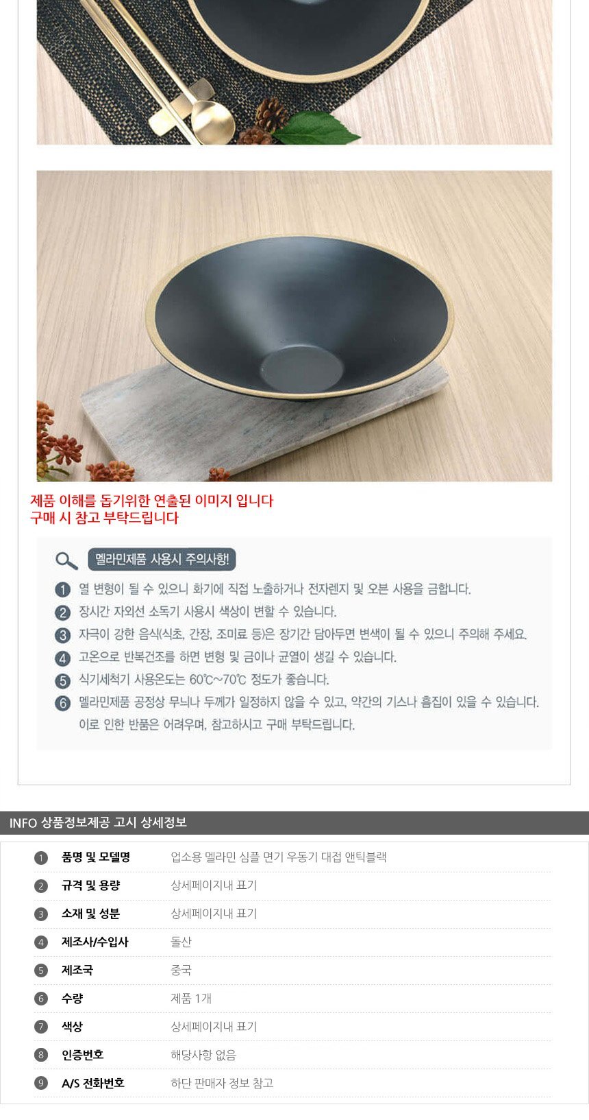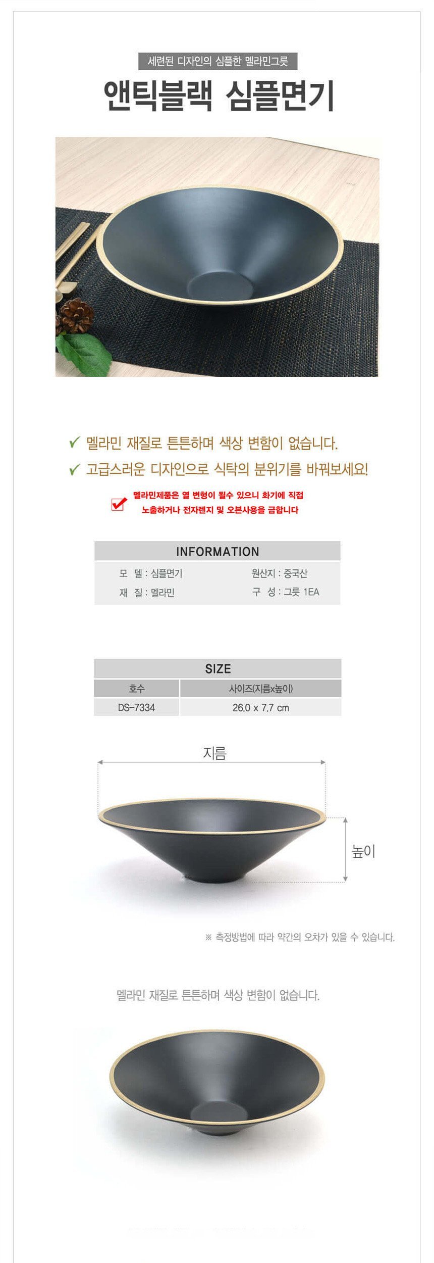 업소용 멜라민 심플 면기 우동기 대접 앤틱블랙 26cm 이미지/