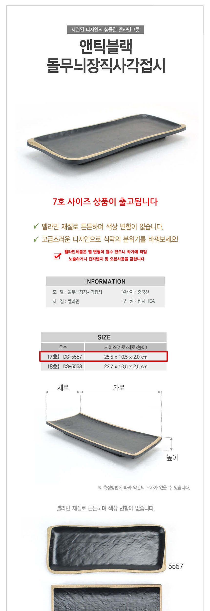 업소용 멜라민 돌무늬 긴 직사각접시 앤틱블랙 7호 이미지/
