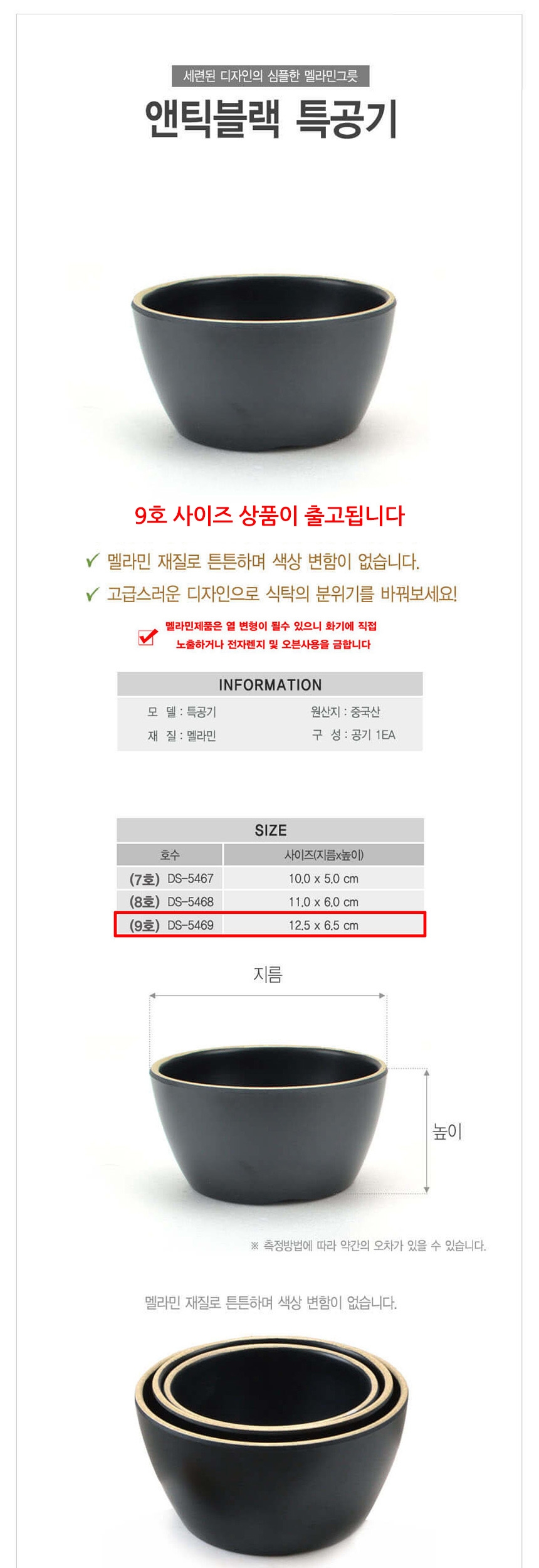 업소용 멜라민 특공기 밥그릇 앤틱블랙 9호 12cm 이미지/