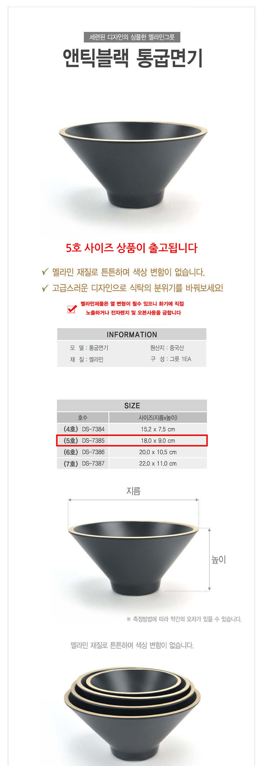 멜라민 통굽 면기 우동그릇 대접 앤틱블랙 5호 18cm 이미지/