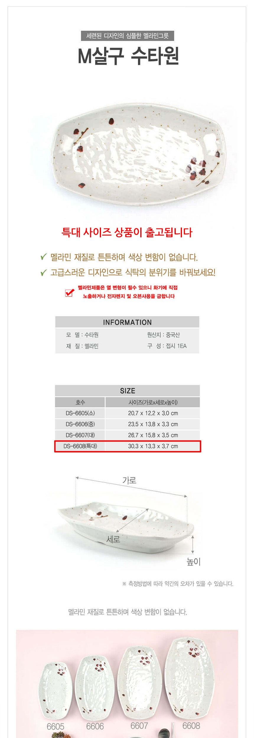 업소용 멜라민 수타원접시 살구 특대