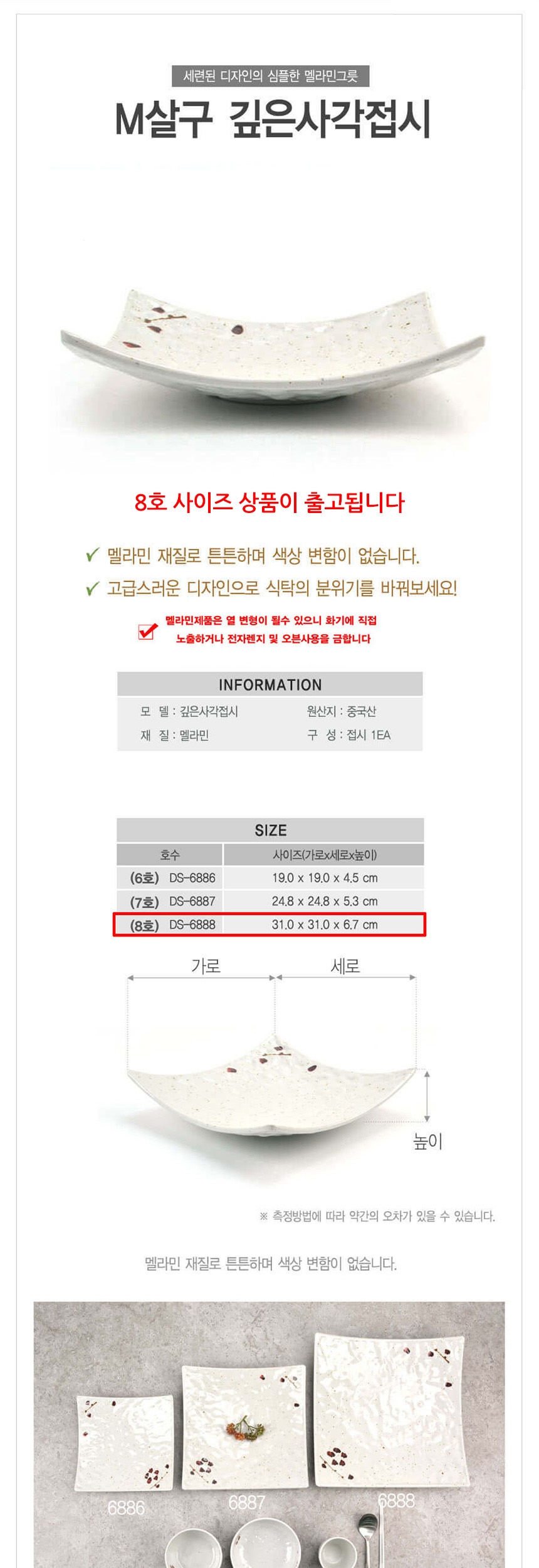 업소용 멜라민 깊은 사각접시 살구 8호
