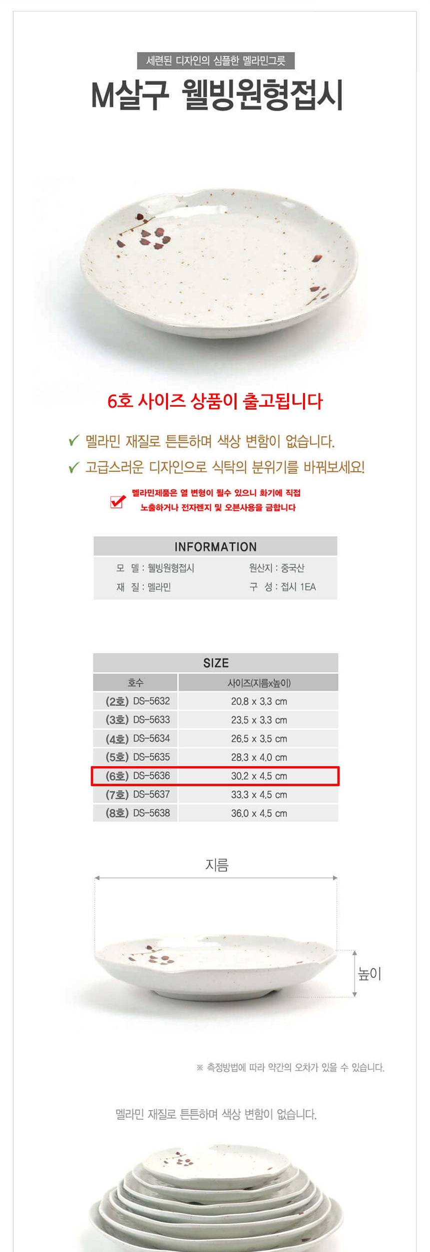 업소용 멜라민 웰빙 원형접시 뷔페접시 살구 6호